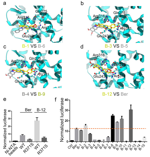 黄连素是从黄连、黄柏等传统中药中提取的单体化合物,常用于治疗痢疾及其它消化道感染。近年来,黄连素的抗心律失常、调控能量代谢、降血糖血脂和抗癌等多重功效使其成为一个“明星”中药单体化合物。尽管黄连素具有很好的安全性,但其抗癌作用在临床应用上仍具有许多局限性,包括抗癌活性低、溶解度和生物利用度低等。然而,由于黄连素的分子靶点不清楚,以往对黄连素的改造比较盲目和随机,并未取得较好的进展。