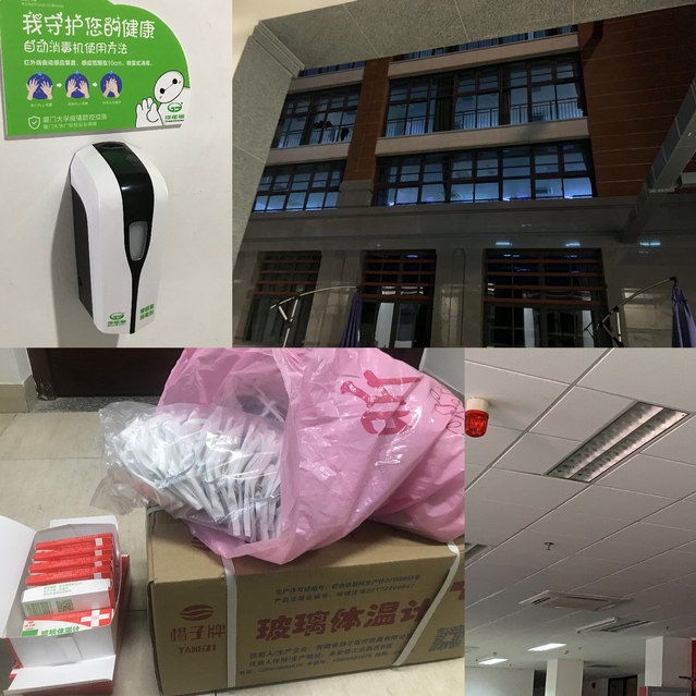 学院为即将返校的研究生座位安装了紫外消毒设备,每晚学生离座后对座位处进行紫外消杀。同时,在学院大楼每层设置临时留观点,电梯处均配备紫外灭菌设备,供同学们随时对双手进行消毒。同时,学院还购置口罩、体温计等常用防疫物资,为师生正常工作和学习提供保障。对院楼、实验室等师生公共场所再次进行统一消杀,不留任何一处卫生死角,为师生营造安全卫生的学习生活环境。学院大楼滚动播放防疫须知,进一步普及防疫知识、培养健康卫生意识。