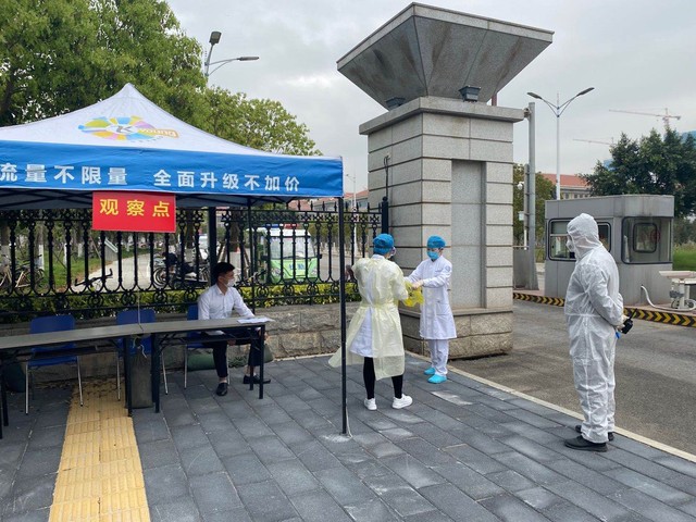 本次演练坚持“统一指挥、快速反应、严防输入”的原则,以“校门测温筛查,教职工出现体温异常情况”为场景,开展疫情防控应急处置演练。演练开始,一名校区职工东侧门入校,体温检测超出37.3℃,门岗负责人按照疫情防控应急预案,及时将发热人员引导至(临时)留观点,并立即联动校区医务室到现场处置。校区医务人员到场询问、登记发热人员信息及近14天旅居史,并对发热病人二次体温检测。第二次体温检测仍超出37.3℃,按照应急处置程序立即上报,并拨打“120”呼叫车辆,将发热人员送至就近发热门诊就诊。发热人员送医后,消杀组立即对门岗、(临时)留观点、设施设备进行消杀。