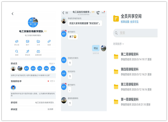 学院依托校内课程平台、QQ微信群、腾讯会议直播、钉钉等载体,推出“防疫领航”系列线上课程,有条不紊开展线上教学工作。老师们通过屏幕分享展示ppt内容,语音直播讲解,同学们以文字或语音与老师连线交流,课后将完成的作业上传给老师。每个环节顺畅进行,确保了学习质量。