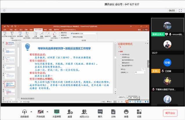3月20日,公共卫生学院就业指导系列“云”课堂开讲啦!学院团委邀请校就业指导中心占群丽老师为毕业生开展主题为“疫情期间如何求职”的就业指导讲座。学院辅导员赵煜老师及本研毕业生参与学习。