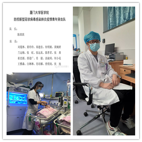 黄琬婷,2018级专硕,共青团员,在附属第一医院新生儿科轮转。她说:“在工作中必须增强敏感性,发现疑似或确诊新冠肺炎感染的患儿时,必须按照有关要求及时报告,这不仅是身为一名医护工作者的使命,也是身为一名共青团员的使命。”
