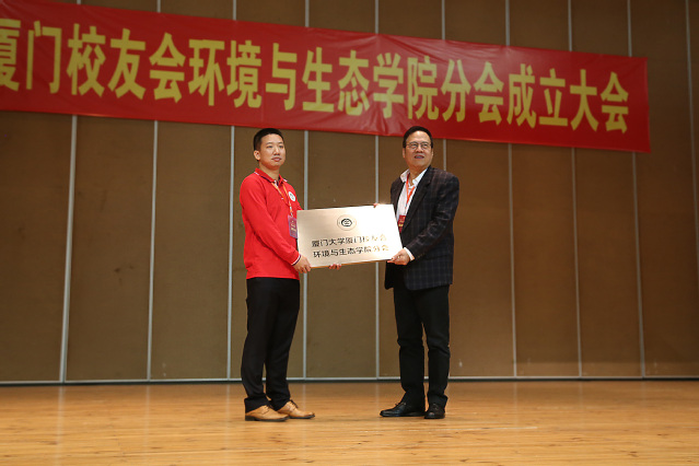 李庆顺代表环境与生态学院讲话,他介绍了学院发展历程、学院和学科近况,指出,当前学院正扎实推进“双一流”建设,深度参与创新驱动发展战略,环境与生态学院分会的成立,既是广大院友多年来的强烈愿望,也是学院建设与发展的必然要求。学院永远是院友的坚强后盾和共同家园,希望各位院友常回家看看,也希望广大院友能一如既往地关心、支持学院的建设和发展,与学院师生员工一道,共同谱写厦大环生人的华美乐章,共同绘就世界一流学院的宏伟蓝图!