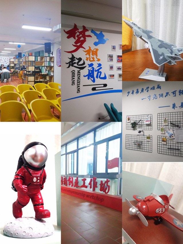 “星空浩瀚无比,探索永无止境”,在映雪六社区廊道,习近平总书记对航天人的嘱托,激励着每一位航天人为推动航天事业发展接续奋斗,为人类和平利用太空、构建人类命运共同体贡献更多中国智慧、中国方案、中国力量。创新创业工作坊随处可见的飞机模型、玩偶、浩瀚宇宙图片,悬挂着的“九大行星”、摆放着的“宇航人”,营造了浓郁的空天氛围,感召着航院学子的报国情怀。平台处处可见的中华传统文化名言警句,“苟日新、日日新、又日新”、“学而不思则罔,思而不学则怠”、“勤学而明辨,慎思而笃行”,时刻提醒同学们珍惜年轻光阴和青春岁月,努力学习,勤于思考,掌握本领,为积极投身国家建设奋发有为。
