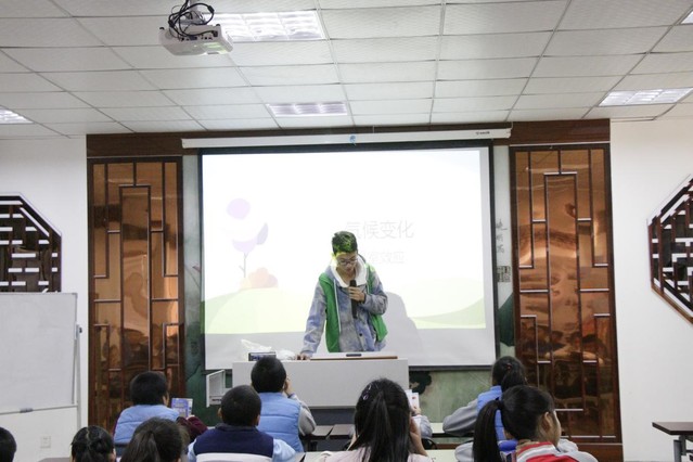 首先,志愿者张彪讲授了第一节课——《太阳当空照》。他从现实中存在的环境生态问题切入,引出了新能源的概念,接着开始重点介绍太阳能的相关知识,包括太阳的特点和状态、太阳能的实际利用和其优缺点等。而穿插在课程中的有趣的星球科普小视频和简单的“太阳扮演”小游戏,不仅激发了孩子们的学习兴趣,更极大地活跃了课堂的气氛。