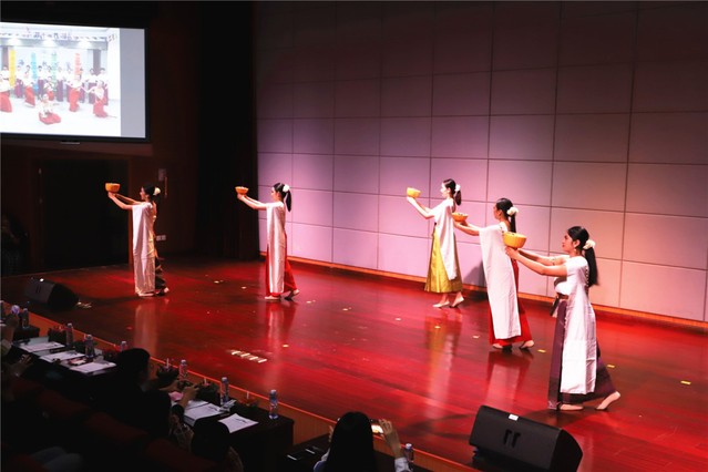 来自中国的陈心蓉同学第一个登场,她和她的搭档带来动感十足的舞蹈,瞬间点燃全场。同样是来自中国的黄丽嫦同学和她的搭档以独特的动漫配音表演给观众带来了一场绝妙的声音秀,观众沉浸其中,不时发出阵阵掌声。英国小伙子王劭侯也不甘示弱,给大家展示了一段节奏明快、层次丰富的beat box表演,现场掌声和欢呼声不绝于耳。随后,印尼男孩陆飞、中国姑娘谢绚、陈欢等同学纷纷一展歌喉,中国姑娘彭瑶、越南姑娘黎氏玉河、蒙古姑娘文静也先后给大家献上了精美绝伦的异国舞蹈;来自墨西哥的荷马同学和来自南非的德林同学搭档,一起为大家表演了一段双语版的诗歌朗诵,观众掌声此起彼伏,现场气氛十分热烈。选手们才艺展示完毕后,泰国学生还给观众带来了精心准备的泰国舞蹈串烧,让大家饱览泰国风情。
