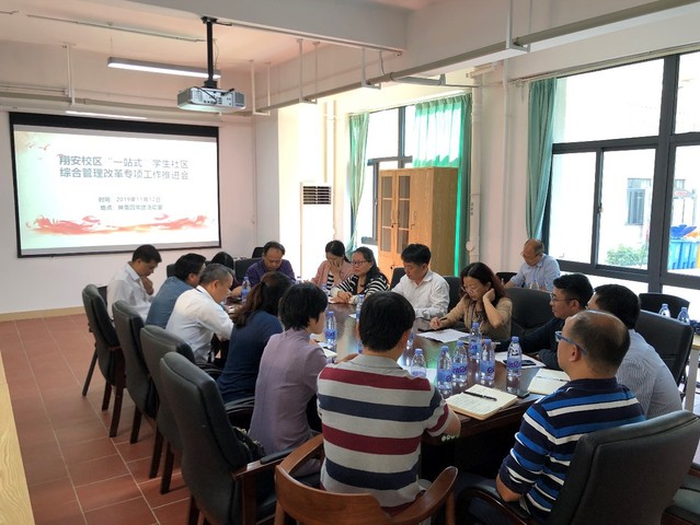 2019年11月12日上午10点,翔安校区管委会、学生办与校区各学院党委副书记、辅导员在映雪社区4号楼党团活动室召开“一站式”学生社区综合管理改革专项工作推进会。会议由翔安校区学生办公室主任张清榕主持。