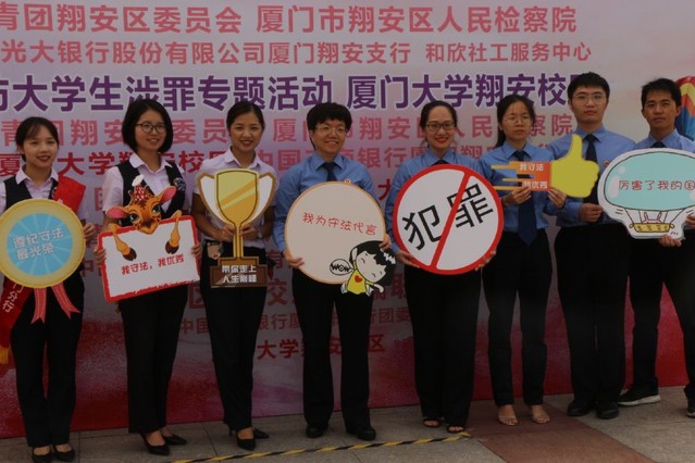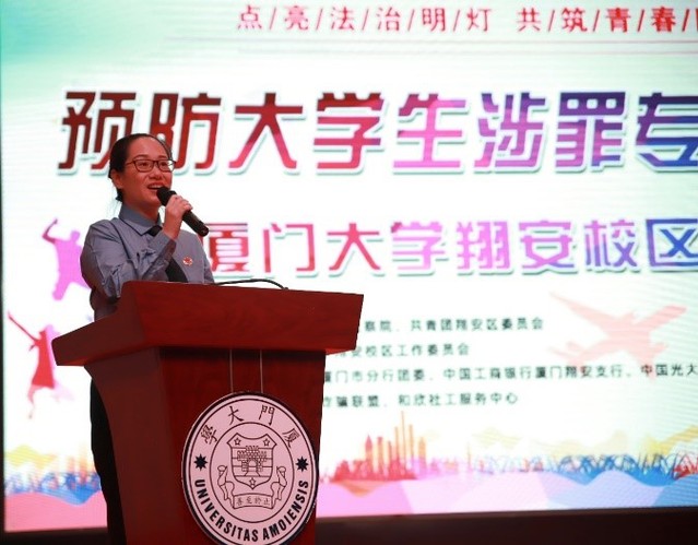 10月31日,预防大学生涉罪专题活动在翔安校区举办,本次活动由厦门市翔安区人民检察院、共青团翔安区委员会主办,共青团厦门大学翔安校区工作委员会承办,以“点亮法治明灯 共筑青春防线”为主题,旨在提高辖区在校大学生自觉守法意识和自我保护意识,从源头上预防和减少青少年学生违法犯罪案件发生,促进校园安全和在校学生人身安全。