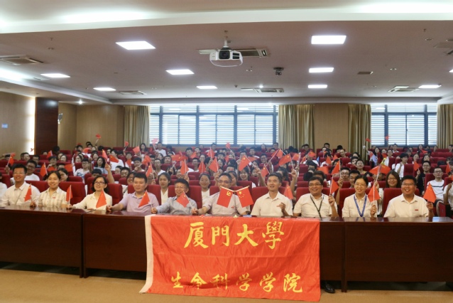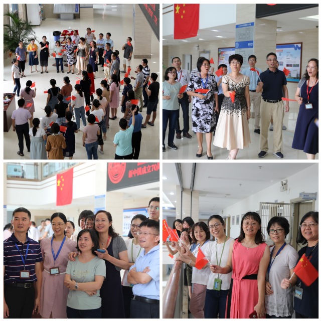9月30日下午,学院在B栋大厅举行“喜迎国庆,庆祝歌唱比赛佳绩”的庆祝会。学院教职工欢聚在一起,共同观看29日的比赛视频,为合唱队精神饱满的状态、强有力的歌声点赞。当《我和我的祖国》熟悉的旋律响起,入选首批全国高校“双带头人”教师党支部书记工作室的生物医学系党支部书记吴乔教授即兴组织在场的教职工,开展了歌唱《我和我的祖国》的快闪活动。大家挥动起小红旗,把对祖国最深沉的爱融入深情的歌声中,优美的旋律、动人的歌词,充分表达了生科院教职工对祖国的深情与热爱,抒发了身为中国人的骄傲与自豪,展现了用奋斗的昂扬姿态报效祖国的决心,为祖国70华诞献上了最真挚的祝福。