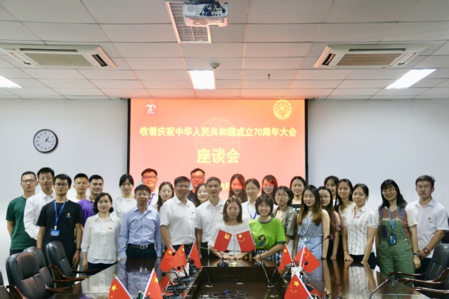 直播结束之后,学院组织青年师生在院楼B403召开座谈会,参会师生踊跃发言,畅谈观看庆典感悟。学院党委书记张明智认真听取了学生代表的发言后,也向学生分享了自己的感想。他直言自己是在座人员中年龄最长的一位,比起同学们,切身经历了更多新中国的变化。从80年代拿着收音机“听”阅兵仪式,到如今和学院同学们一起“看”阅兵仪式,几次阅兵都让他感受到了祖国日新月异的发展。同时,他也对学生们提出了殷切期望,希望生命科学学院学子能够向校主陈嘉庚、数学家陈景润等先贤学习,在未来努力学习,积极进取,为国家建设添光增彩。