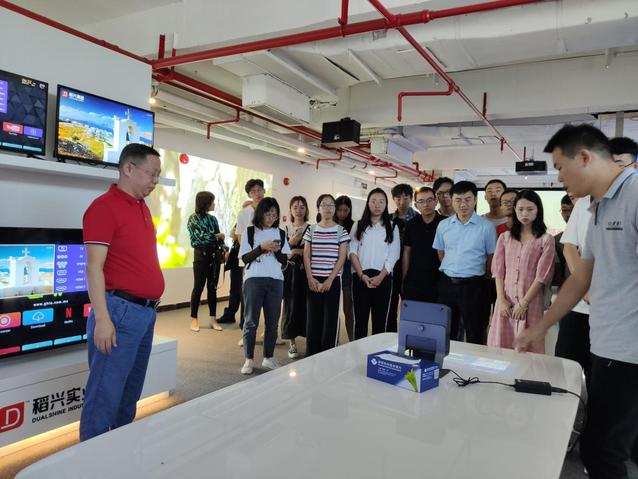 9月21日上午,调研团一行来到稻兴科技(深圳)有限公司调研学习。在稻兴科技有限公司负责人的介绍下,同学们参观并体验了该公司研发的系列智能产品;随后,公司负责人介绍了公司的概况,并与大家座谈交流,回答了同学们感兴趣的问题。稻兴科技有限公司董事长陈全炼给同学们建议:“对于初创业者,要先熟悉某一行业,找准定位,建议先要学习经验,再去开拓。”