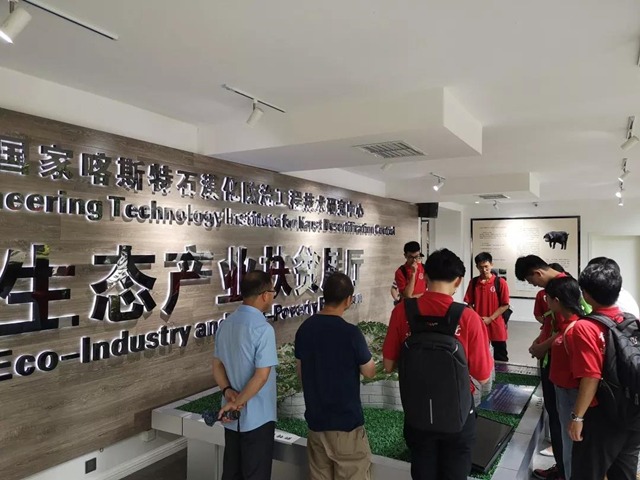 接着,队员们参观了该中心的生态产业扶贫展厅。贵州的表层土地十分的瘠薄,地形属于十分容易水土流失的类型,这些是导致贵州地区经济落后的重要原因。而现在,在研究人员的努力下,贵州的种植产业开始升级,改种了花椒、火龙果、砂仁等经济价值高且能改善水土流失的作物,人民的经济水平逐步提高。