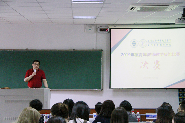 经过初赛的激烈角逐,最终12名青年教师脱颖而出进入决赛,同台竞技。生动有趣的教学内容、流利地道的英语发音,新颖独特的教学方法,行云流水的漂亮板书……决赛中,参赛教师们都拿出了自己的看家本领,运用各种新颖的教学模式和教学理念,展示了一堂堂高水平的专业课,也展现了学院青年教师的风采。整个比赛现场精彩连连,掌声不断。历经近6个小时的精彩比拼,最终洪镔老师以其具有深度的教学内容、精心的教学设计和出色的语言运用征服了评委,获得本次比赛特等奖。林颖婷、王柔洁获得一等奖;肖宁遥、吕冬如、史凤霞、龚荣秀获得二等奖,王振东,吴琳,赵邦秀,陈婧婧,施若晗获得三等奖。
