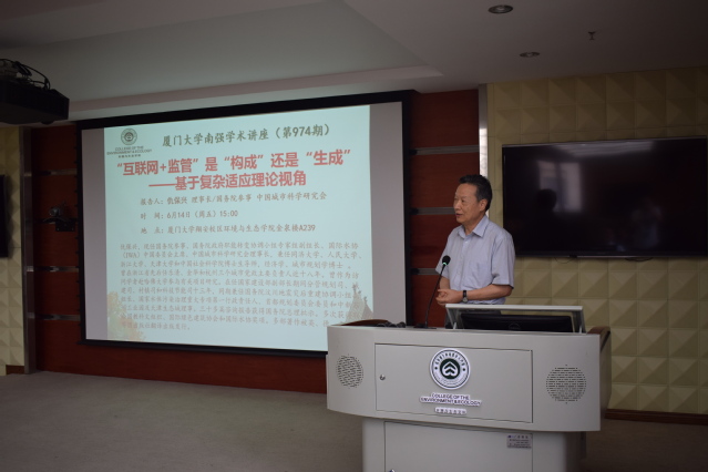 6月14日下午,现任国务院参事、中国城市科学研究会理事长仇保兴博士做客厦门大学环境与生态学院,并为师生带来题为 《“互联网+监管”是“构成”还是“生成”——基于复杂适应理论视角》的南强讲座。“南强讲座”是厦门大学最高级别的学术讲座,报告人均享有极高的学术声誉,讲座自2002年起设立,本期为第974期。