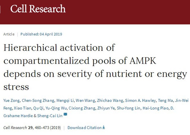 在这项研究中,林圣彩教授团队检测了定位于不同亚细胞组份上的AMPK响应葡萄糖或能量匮乏的情形。他们发现,不同程度的能量应激能够通过不同的机制激活不同区域的AMPK,并引起不同区域的底物的磷酸化。首先,当细胞在葡萄糖浓度低于5 mM的情况下(AMP/ATP比率还没有变化),溶酶体上的AMPK最先被磷酸化并激活;之后当葡萄糖水平更低时,胞质中的AMPK开始被激活;而当细胞中能量严重匮乏时,线粒体上的AMPK被最终激活。该研究工作首次揭示了不同时空下AMPK激活的现象,对人们更深入多层次了解AMPK的激活状态具有重要意义。