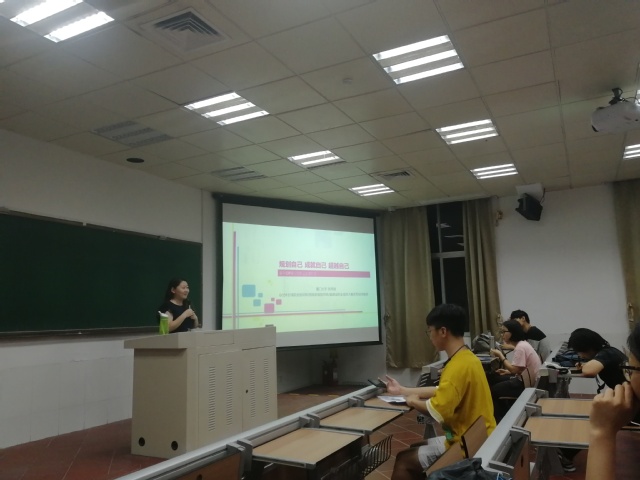 张秀丽老师是国家二级职业指导师、GCDF全球职业规划师、BCF生涯规划师,曾获福建省生涯规划与就业指导课程教学比赛一等奖,多年来指导学生参与福建省大学生的职业生涯规划大赛屡获一等奖。她的分享主题为:《规划自己,成就自己,超越自己》,重点就职业生涯规划的基础理论做了讲解,同时还为同学们呈现了大量丰富的生涯规划案例。关于职业生涯规划大赛的理论基础,张老师指出,它是基于CIP认知信息加工理论。CIP理论是对同学们最具有指导性和实操性的理论,它包含三个层面,第一层需要广泛收集自我方面和职业方面的知识,第二层是CASVE循环,通过信息加工形成决策方案,第三层是对于整个决策过程的反思,就相当于第三只眼在看自己整个决策过程的思维模式,叫做元认知。讲解过程中,张老师分享了三个小故事,并引用了巴菲特的一句话“我和你没有什么差别。如果你一定要找一个差别,那可能就是我每天有机会做我最爱的工作”告诉同学们兴趣对职业规划的重要性。她还提醒同学们价值观指向我们内心最重要的东西,它是我们强大的内在驱动力,是引导行为的方向。随后,她向同学们推荐了CASVE循环和SWOT分析的方法,这是生涯决策的工具。接下来,她指出职业生涯规划不是一层不变的,需要不断做出反馈和调整。她最后总结了职业生涯规划的十六字口诀:知己知彼,决策行动,检查修正,动态平衡。张老师的讲座深入浅出,同学们表示收获颇丰,对职业生涯规划的原理、方法和意义有了更为深刻的理解。