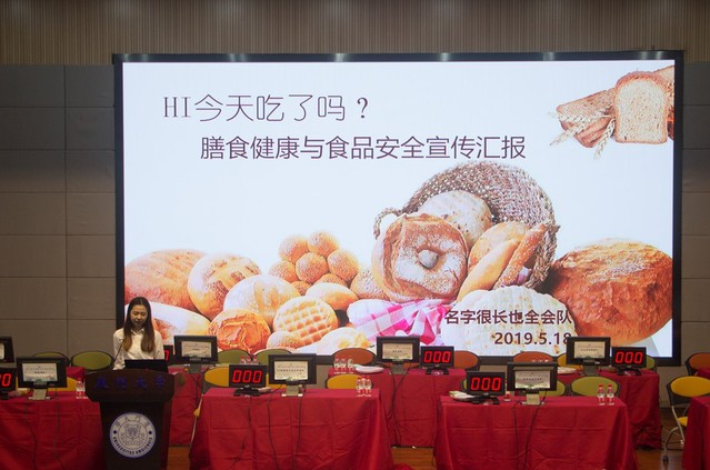 本次竞赛的决赛阶段分为两个环节,一是现场展示环节,二是知识竞赛环节。在现场展示环节,9支队伍纷纷通过视频与PPT展示相结合的方式详细介绍了“营养膳食和食品安全”主题的宣传成果,还通过微信推送、制作宣传手册、设计宣传海报等方式,让营养健康知识覆盖到整个校园,用实际行动践行厦大学子健康饮食的承诺。在气氛紧张、激烈的知识竞赛环节中,9支队伍均展现出良好的精神风貌与较高的专业素养,一度出现了你追我赶的场面,比分十分胶着,赛况扣人心弦。