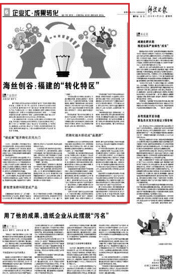 4月25日,《科技日报》第6版发表题为“海丝创谷:福建的‘转化特区’”的通讯文章。