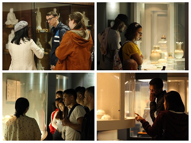 在用心欣赏历代白瓷艺术珍品之后,来自不同国家,不同文化背景的艺术家们创作的“中国白”国际艺术家驻地项目作品展也吸引了留学生们驻足观看。这里汇集了全球艺术家以他们的视野、创造力及艺术手法重新定义和展示的现代白瓷艺术品。这是传统与当代的碰撞,是技术与艺术的火花。