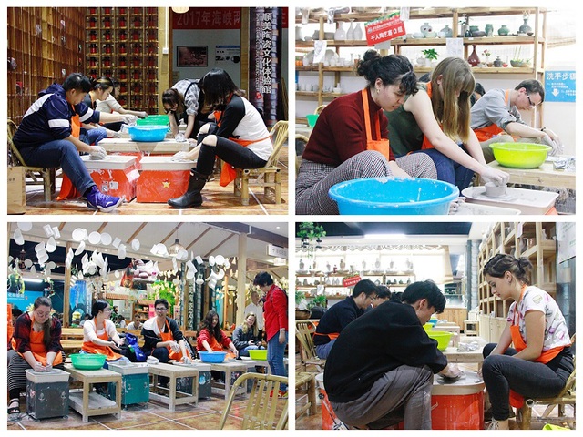 此行文化体验的高潮出现在DIY陶吧区。在陶艺师向留学生介绍示范了手拉坯、彩绘的基础知识和操作手法后,大家获得了“一显身手”的好机会。但老师手里顺溜的泥巴一到了留学生手里却并不那么“听话”,揉泥、拉坯、脚速、手力都需要协调一致方能出佳品。他们在学中做,在做中学,现场互动氛围积极热烈。在这方充满泥土气息的空间里,大家体验玩泥的乐趣,锤炼自己的身手,感受陶瓷文化的心灵润泽。活动结束后,白俄罗斯留学生沙奇叡说道:“手拉坯看似简单,如果没有多加练习的话,还是很难做好一个瓷器的。中国的陶瓷手艺人要做出那么精美的瓷器肯定需要下不少功夫的,实在是敬佩!”