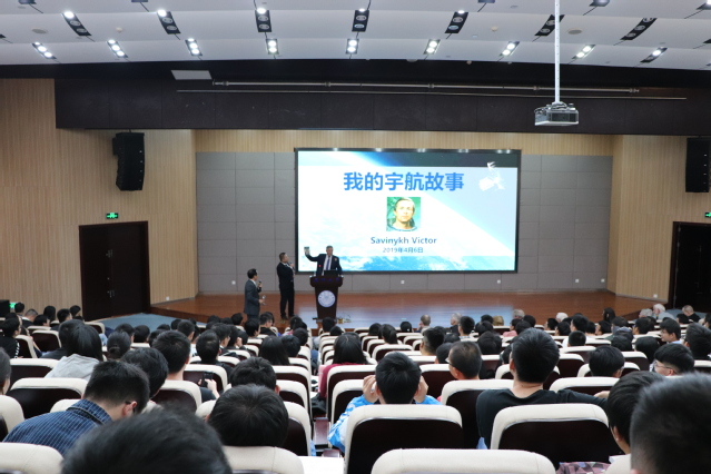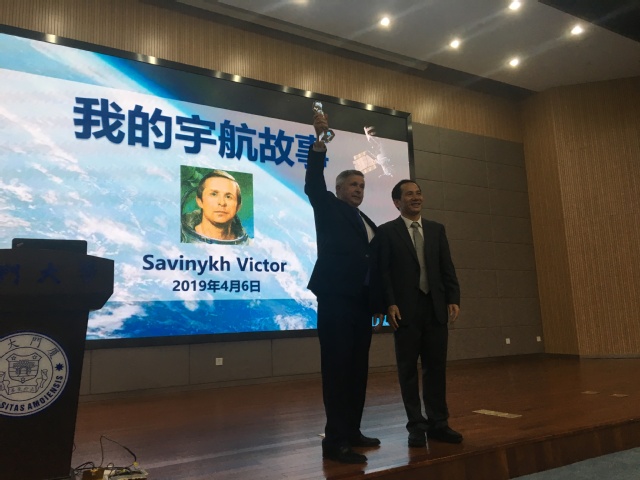 Savinykh Victor首先表示了对厦门大学98周年校庆的祝贺以及对厦门大学学子的祝福。紧接着他介绍了自己的母校与大学专业。正是因为自己的专业,他当时接触了一些宇航员,并在之后通过层层选拔成为了一名宇航员。1981年他第一次进入太空,他表示飞行过程带给人的感受无疑是痛苦的,但由于之前已经做过很多训练,他最终还是坚持了下来。这一坚持,就让他在“礼炮6号”上一共度过了80个昼夜。