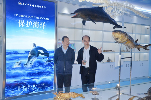 在谭蔚、吴忠露的陪同下,陈光一行还参观了科技中学翔安校区的食堂、宿舍、教室、实验室、海洋珍稀物种标本馆等场地。
