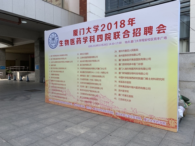 12月28日下午,我校2018年生物医药学科四院联合招聘会在校区学生活动中心顺利举办。本次招聘会由校学生就业创业指导中心及医学院主办,生命科学学院、公共卫生学院、药学院协办,共吸引了来自省内外40家用人单位参会。