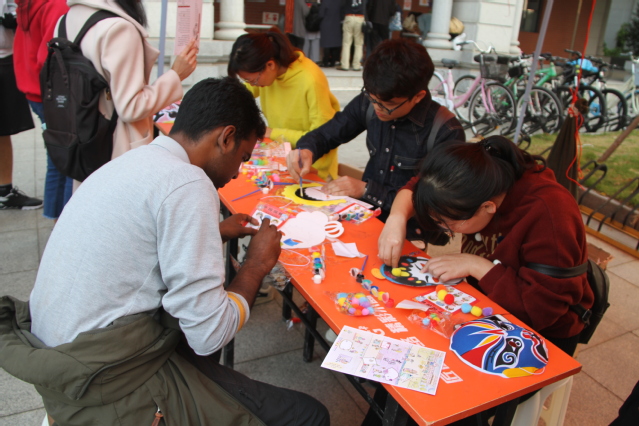 本次“中国日”文化节分为两个部分——“文化荟萃联欢”和“文化互动游园体验”。经过老师和同学们的精心装饰,坤銮楼西面至德旺图书馆东面的活动区域,充满了浓浓的“中国味道”。