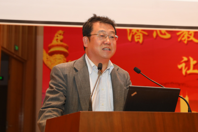 林亚南教授作题为“立足三尺讲坛 潜心教书育人”的报告。他以“本科教育”“课程建设”“学院发展”等方面为切入点,分享了自己一系列的教育理念,展示了从教30多年的师者故事。他表示:“作为一名教师,要牢记初心和使命,努力做到以高尚的品德影响学生,以高深的学问吸引学生,以高超的艺术启迪学生。作为课程教学组负责人,要坚持建设课程资源,示范辐射,持之以恒,追求卓越。作为一名高校院系负责人,就要瞄准一流人才培养和一流学科、一流团队、一流平台建设,努力将‘四个回归’落到实处。”