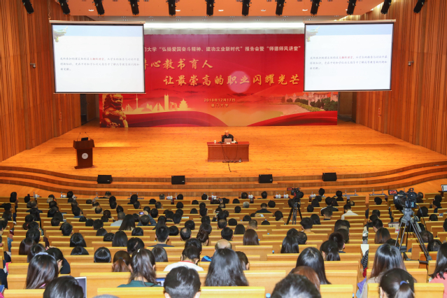 据悉,为深入学习贯彻全国教育大会精神,落实立德树人根本任务,深入开展“弘扬爱国奋斗精神、建功立业新时代”活动和“培养社会主义建设者和接班人”主题学习教育,学校决定举办四场专题报告会暨师德师风讲堂,学习宣传我校优秀教师代表理想信仰、责任担当、创新探索、潜心育人的先进事迹,掀起全校师生员工学习弘扬爱国奋斗精神的热潮。除这一场外,学校还将围绕“勇于创新探索,在最前沿的领域攻坚克难”“服务国家发展,到最需要的地方建功立业”“坚持思想领航,在最青春的领域陪伴成长”等三个主题组织相关单位的优秀集体和个人开展主题宣讲。
