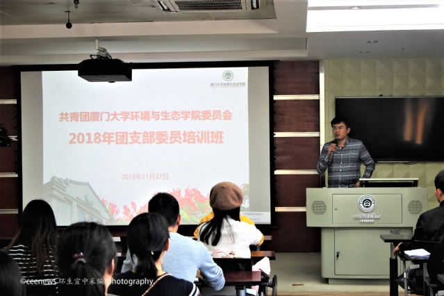 11月27日中午,环境与生态学院团委在金泉楼A239组织开展2018年团支部委员培训。环境与生态学院团委书记林明华,辅导员蔡群飞,本科生团总支书记黄睿、研究生团总支书记张萍,全院本科生、研究生各团支部委员参加培训。