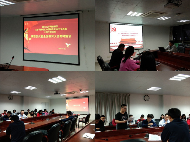 11月26日晚,翔安校区习近平新时代中国特色社会主义思想学习社在学生活动中心A201举行全国教育大会精神学习交流会。翔安校区学生办主任兼校学生处副处长张清榕、社团指导老师晏振宇、邹文菁、学习社全体成员和翔安校区学生会骨干代表参加了本次活动。活动由学习社社长牟言昊主持。