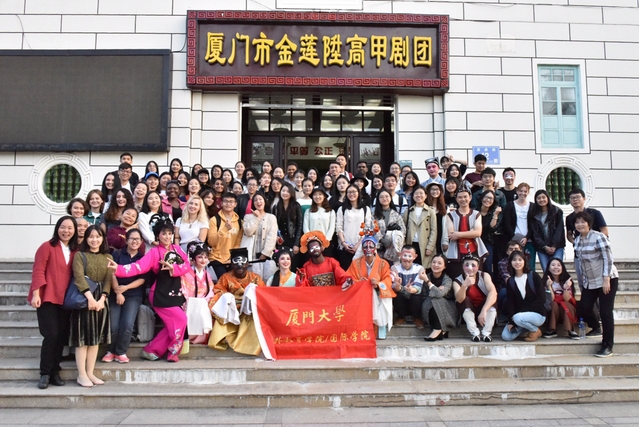 为了帮助中外学生更加深入的体会厦门大学的校史文化和嘉庚精神,学习和欣赏中国地方戏曲——闽南高甲戏,11月24日,海外教育学院中华文化体验课程班的80多位来自20多个国家的学生分成多个研修队伍,在陈端端、肖宁遥老师和学生工作人员的带领下,前往厦门市集美区参观校主陈嘉庚旧址,体验闽南高甲戏文化。