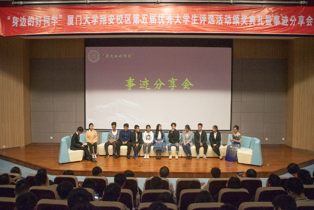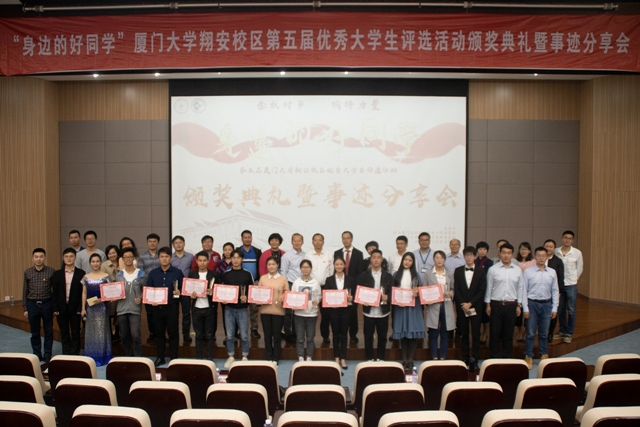 2018年11月19日晚,“身边的好同学”厦门大学翔安校区第五届优秀大学生评选活动颁奖典礼暨事迹分享会在德旺图书馆小报告厅举办。出席本次活动的有厦门大学校长助理、翔安校区党工委书记、管委会主任陈光,校区管委会各职能部门负责人,各学院党委副书记、团委及辅导员老师,校学生会、研究生会主要负责同学,以及来自校区各学院的同学。