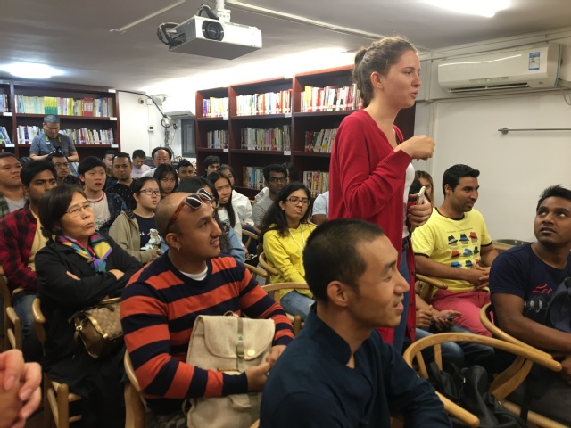 肖克凡老师以“为何大多数中国人高个子驼背”的例子为切入点,介绍了中国“人”的“共性”文化。他建议留学生们,来到中国,不仅要读书,也要读人,多和中国人交朋友。因为每一个人,都有不同的生活版本,这就是独一无二的文学作品。当来自尼日利亚的刘健坤问到如何保持阅读的习惯时,肖老师建议大家在学习的过程中,一定要永远保持一颗好奇之心,这是接受教育的第一步。以自己为原点,对于未曾了解过的知识,要主动去学习,这样才能致使学习的渠道呈放射状,再汇集到自身,不断进步。