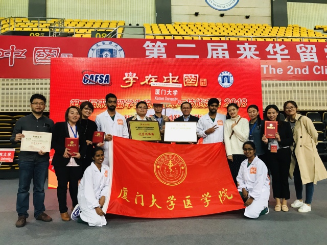 2018年10月13日,由中国高等教育学会外国留学生管理分会和大连医科大学联合主办的“学在中国”系列活动“第二届来华留学生临床思维与技能竞赛·2018”在大连医科大学落下帷幕。全国三十所教育部批准开设临床医学本科英文授课的院校组队参加此次竞赛,我校医学院临床医学专业2013级四位留学生代表厦门大学参加此次竞赛,并最终获得优秀团体奖、最佳风貌奖及儿科技能单项优秀奖。