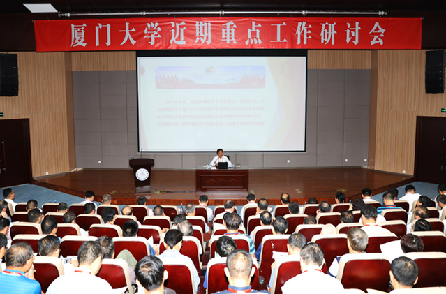 为深入学习领会全国宣传思想工作会议和全国教育大会精神,推动学校第十一次党代会精神的落实,加快推进一流大学建设,9月13-14日,学校在翔安校区召开近期重点工作研讨会。会议传达学习了中央和教育部近期部署要求,围绕落实党代会提出的各项目标任务,统筹推进“双一流”建设展开了深入学习研讨和广泛交流,并就学校近期重点工作作出部署。校党委书记张彦、校长张荣出席并讲话。