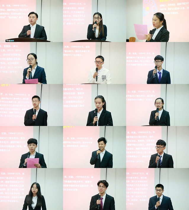 在接下来的竞选演讲中,15位委员候选人分别以自己的工作经历为基础,畅谈了对未来学生工作的规划,并承诺将把服务同学升华为真诚、热忱、创新的责任与情怀。