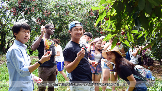 下午,在苏经理的带领下,学院师生一行又来到港尾镇格林村,进一步实地感受改革开放以来新农村建设所带来的变化。留学生们首先参观了格林村公办卫生所。得益于全面参保计划的支持,近年来村里的医疗水平得到了极大提升。同为格林村村民的苏经理对此深有感触,他表示,医疗报销比例的提高,重大疾病报销范围的增加,医疗保险体系的完善,都极大解决了当地村民看病难、看病贵的问题。接着,留学生们走进村里的荔枝林,此时正值荔枝成熟的季节,大家有机会体验荔枝采摘,切身感受中国农村生活。留学生们三两一群,通力合作,在满山遍野的荔枝丛林中细细体味“日啖荔枝三百颗,不辞长作岭南人”的乐趣。