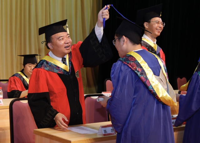 邬大光宣读学位授予决定。在激昂的校歌声中,毕业生们依次上台,主席台的领导和嘉宾为他们颁发学位证书并援正流苏。接受学位证书的毕业生们在小合唱团手持鲜花的夹道欢送之下,沿着会堂正中的红地毯,从大会堂正门设置的“毕业之门”走出,预示着步入人生新的阶段。随后,毕业生们与家长、师长共同参加了在科学艺术中心一楼举行的冷餐会,在轻松愉快的氛围中共叙亲情友情。