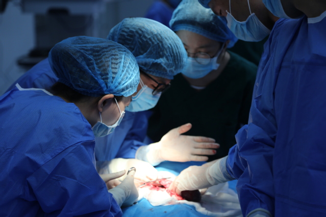 决赛分两个环节。第一环节为术前准备,此环节要求每组选手在规定时间内完成动物麻醉,固定,备皮,刷洗手,消毒铺巾,穿手术衣,戴无菌手套等一系列术前准备。第二环节为随机手术操作。评委老师现场宣布操作项目和比赛规则后,各支队伍自行安排分工、开始手术。本环节不仅考核选手们对切开缝合、打结等外科基本操作,更着重考察了参赛队伍的应变能力和团队协作能力。在争分夺秒的紧张操作中,评委在各组间轮转,仔细观察评分。