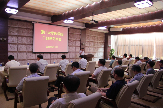 6月12日下午,医学院在成义楼523会议室召开干部任免宣布大会,校党委副书记、副校长李建发,学校办公室主任、校党委组织部部长孙理,医学院领导班子、系部中心所主任、全体教授和科级以上干部参加了会议。会议由孙理主持。