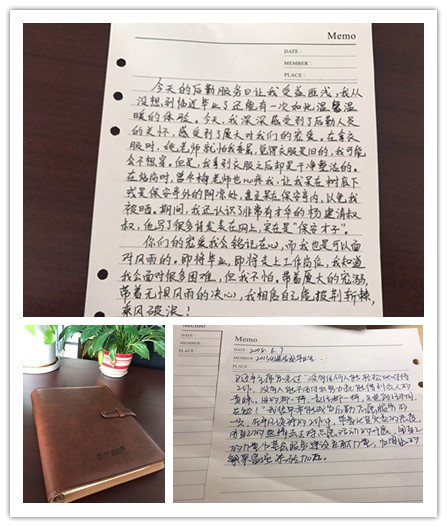 活动后,参与的毕业生们纷纷在留言本上写下心里话,抒发对后勤叔叔阿姨大哥大姐、对母校的深厚情感。海外教育学院2018届毕业生邱玉华同学写到:“今天的后勤服务日更是一次温暖温馨的体验。即将毕业,即将走上工作岗位,我知道我会面对很多困难,但我不怕。带着母校对我们的宠爱,带着无惧风雨的决心,我相信自己能披荆斩棘,乘风破浪!”