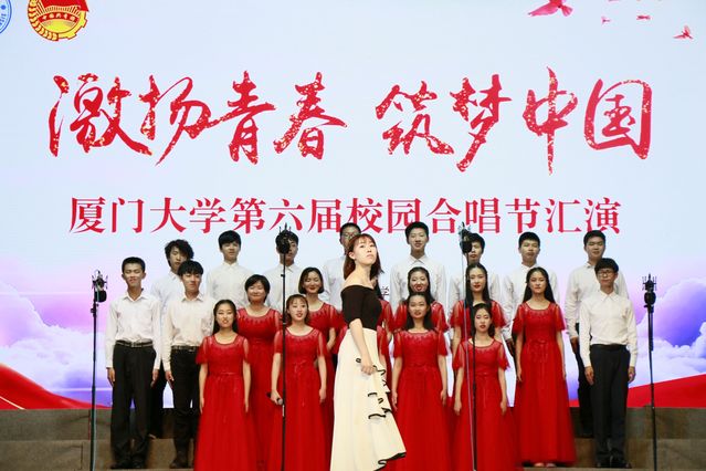 18日,能源学院合唱团在翔安校区展演上一鸣惊人,虽寥寥25人,但却唱出了最雄浑的歌声,合唱团成员们自信昂扬、精神饱满,他们兼具热情与深情的表演收到一致好评;26日晚在建南大礼堂上,男生们身着白衬衫与西裤,女生们换上奔放激情的红色礼服,红白相衬间,能源学院合唱团用高亢激昂的朗诵和热情饱满的歌声唱响新时代赞歌,展示新青年风采。“国家富强,民族振兴;人民幸福,家家享太平;放飞希望,你和我都能出彩;咱用劳动和汗水,共圆中国梦。”把青年学子为实现中华民族伟大复兴的中国梦而凝聚的磅礴力量娓娓道来。他们的歌声时而婉转,时而激扬,道出了自己饱满的热情,唱出了对祖国的深深爱恋;那热情奔放的歌声,展现的是青年学子与祖国发展同频共振的激情,唱出的是青年学子为实现中华民族伟大复兴的中国梦而奋斗的决心!