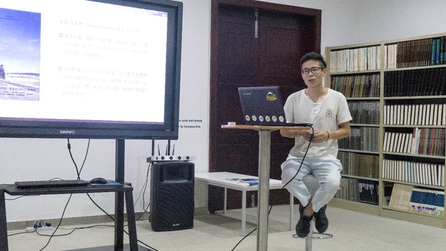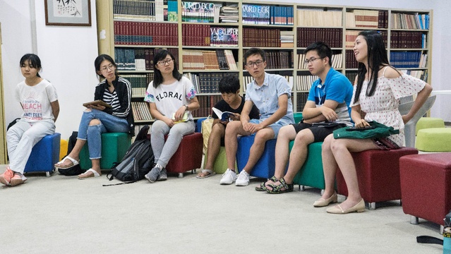 5月16日晚7点半,德旺图书馆梦享屋清风习习,“书香满园庭”系列读书会之《寻路中国》专场活动正在进行。同学们“以书会友”,在主持人朱凯峰的带领下,跟随美国作家彼得·海斯勒镜头一般的语言,换一种视角品读、体察我们日日夜夜生活其中的中国大地。