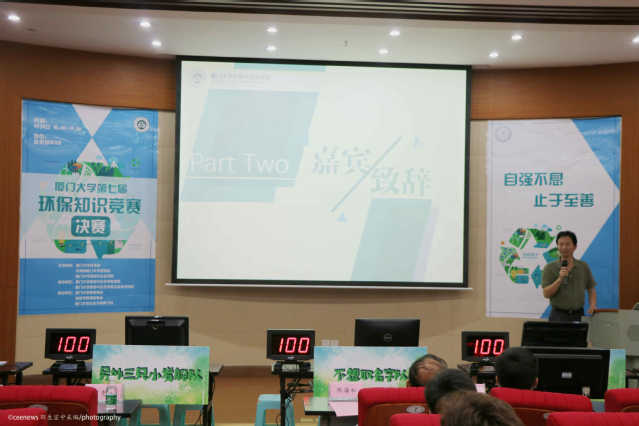 5月6日下午,厦门大学第七届环保知识竞赛(非专业组)决赛暨颁奖仪式在翔安校区金泉楼B103报告厅举行。翔安校区团工委书记兼校团委副书记洪海松,环境与生态学院党委副书记周克夫、团委书记林明华,辅导员张璐婧出席活动。环境与生态学院周克夫副教授,杨盛昌副教授,吴水平副教授应邀担任大赛评委。