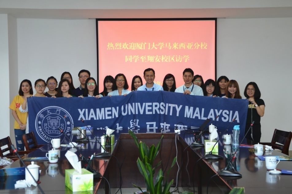 4月11日上午,正值97周年校庆期间,为了加强校区之间的联系,提高马来西亚分校学生对于厦门大学的认同感,厦门大学马来西亚分校中文系师生一行16人参访翔安校区。访问团包括1名带队老师、15名马来西亚当地学生。校区党工委副书记、管委会副主任李峰与老师同学们见面交流,对大家的到来表示热烈欢迎,介绍了翔安校区的基本情况,一起观看了翔安校区宣传片并合影留念。