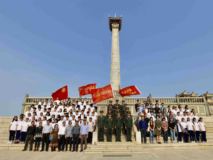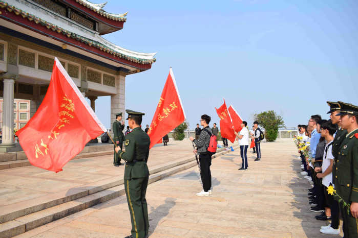 接着,刘五店中学新发展团员面向团旗举行入团宣誓仪式。随后,三方新老党员面向党旗,进行了重温入党誓词仪式,在庄严的仪式中,不忘来时路,奋起新时代。最后,全体师生、官兵向嘉庚墓献花。