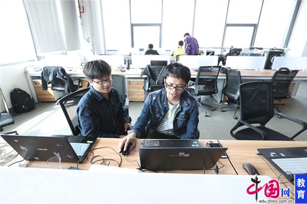 在厦门大学国家级大学科技园创新创业实践基地,学生们刻苦专研的情景以及创新成果吸引了参观者频频驻足。