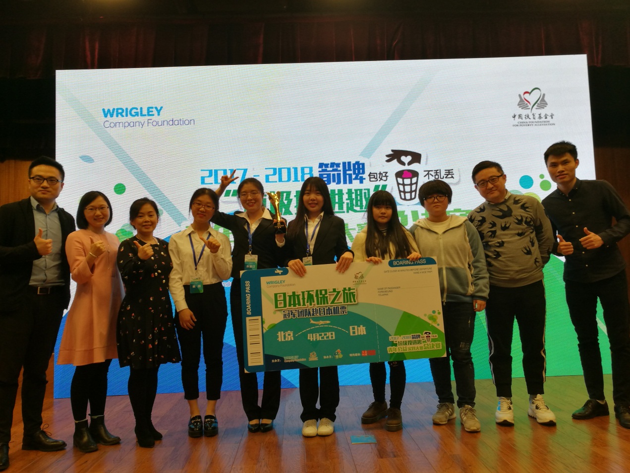 3月23日下午,2017-2018箭牌“垃圾投进趣”青年公益实践大赛全国总决赛在北京林业大学学研报告厅举行,由我校环境与生态学院5名本科生组成的参赛团队——FY团队凭借极具创意的实践方案与出色的现场答辩,赢得了来自玛氏箭牌中国、中国扶贫基金会、创意营销、创新思维及环保公益界评委们的认可,获得全国总冠军。